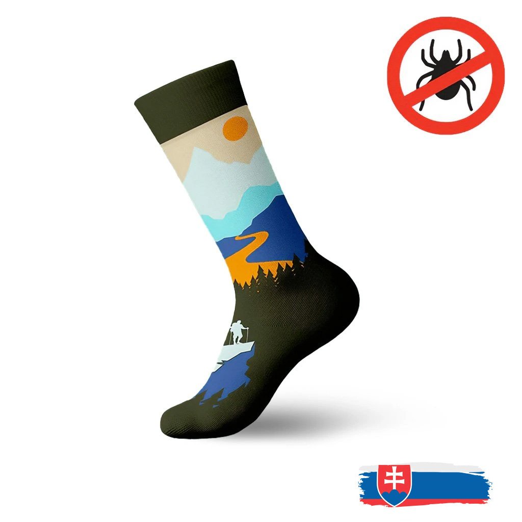 Klasické ponožky Karpathia®IXO - Turista, vyrobené zo špeciálneho slovenského vlákna Prolen®IXO, ktoré znižuje retenciu (zdržnú dobu) kliešťa obyčajného (Ixodes Ricinus L.) na tkanine.